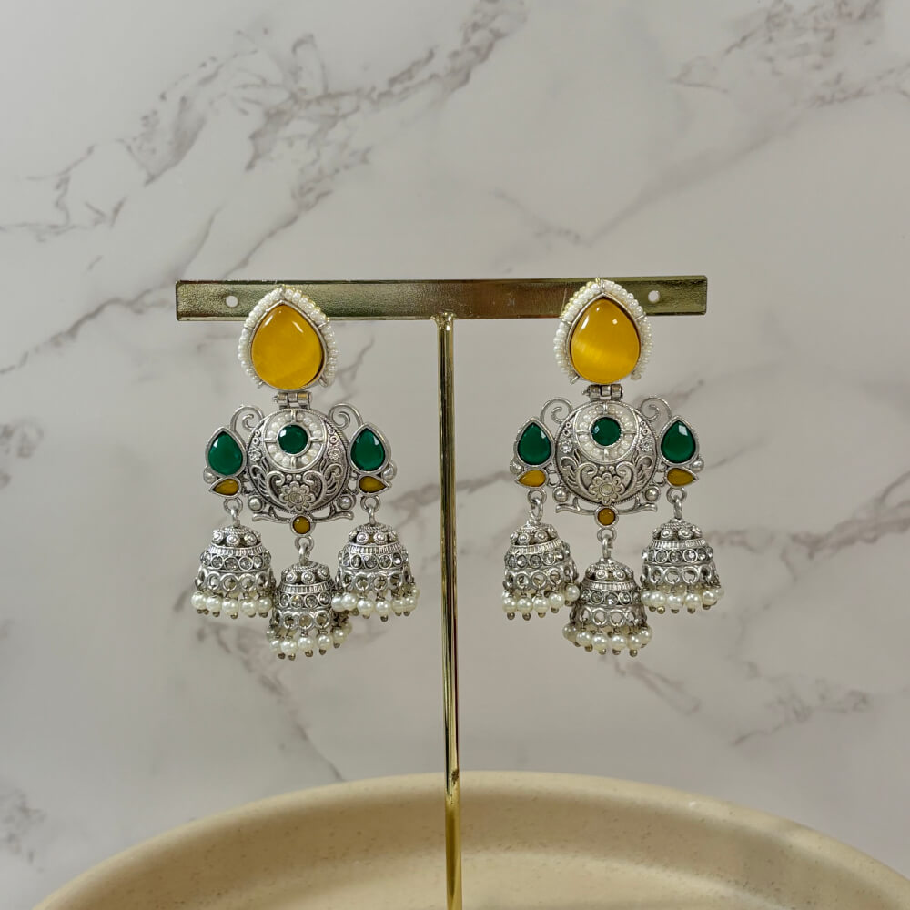 - Silver‑tone finish with tiny pearl jhumka drops for extra movement.