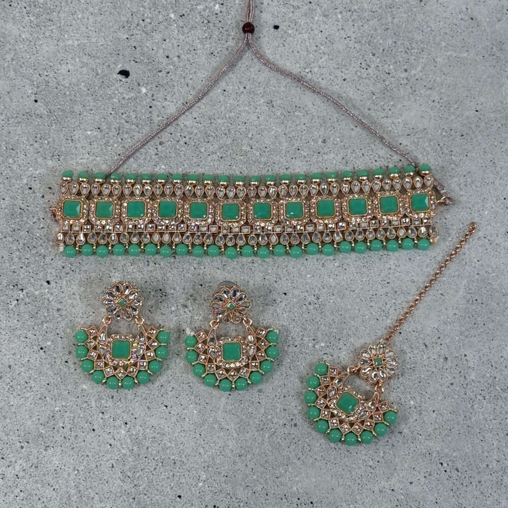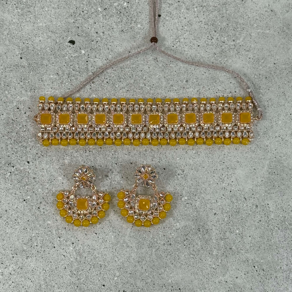 All sets include a necklace, earrings and chutti – excluding the yellow set (no chutti).